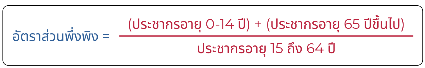 โดยมีข้อสมมติว่าประชากรวัยเด็กและวัยสูงอายุ เป็นวัยที่ไม่อยู่ในกำลังแรงงานต้องพึ่งพิงรายได้จากคนวัยทำงาน