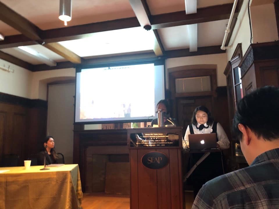 ตอนที่ 4 ดิฉันและโสรยาได้ทำความรู้จักกับ Cornell University และเพื่อนๆผู้เข้าร่วมนำเสนอผลงานวิชาการในครั้งนี้เรียบร้อยแล้ว ก็ถึงเวลาของ mission หลักของการเดินทางครั้งนี้ คือ การนำเสนอผลงานวิชาการนะคะ แน่นอนว่า ตื่นเต้นมาก ๆ ระหว่างที่รอนำเสนอนั้นดิฉันสังเกตได้ว่าทุก ๆ คนในงานให้เกียรติซึ่งกันและกันเป็นอย่างมาก เริ่มต้นตั้งแต่การแต่งกายที่สุภาพ การเงียบรับฟังผู้นำเสนอท่านอื่น ๆ อย่างตั้งใจ แม้แต่เสียงเปิดปิดประตูยังแทบไม่มี การถ่ายภาพที่พร่ำเพรื่อไม่พบเห็นเลยจากห้องประชุมแห่งนี้ ทุกคนจะถามเมื่อผู้ทรงคุณวุฒิได้ให้ข้อเสนอแนะและถามคำถามเรียบร้อยแล้ว แต่ที่สังเกตได้ชัด คือ ไม่มีใครชี้ว่า งานใครถูกหรือผิด ทุก ๆ คนจะถามในสิ่งที่ตนไม่ทราบหรือสนใจ หรือชี้แนะในสิ่งที่นำไปพัฒนาต่อยอดได้เท่านั้น ส่วนตัวดิฉันเห็นว่า นี่คือบรรยากาศทางวิชาการที่เป็นมิตรและสร้างสรรค์เป็นอย่างมาก แม้แต่ตอนที่ดิฉันและโสรยานำเสนอเอง แม้จะมีการผิดพลาดทางเทคโนโลยีที่ไม่เชื่อมต่อกัน ทุกคนก็พร้อมที่จะรอคอยและเป็นห่วงความรู้สึกของเราทั้งสองมากๆเมื่อการนำเสนอจบลง เรื่องราวเหล่านี้ยังประทับอยู่ในจิตใจและความทรงจำของดิฉันเสมอมา